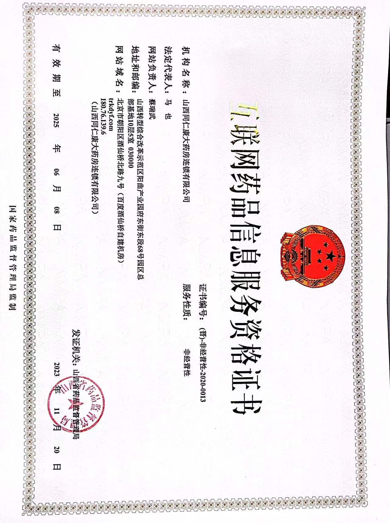 互聯(lián)網(wǎng)藥品信息服務(wù)資格證書(shū)編號(hào):(晉)-非經(jīng)營(yíng)性-2020-0013